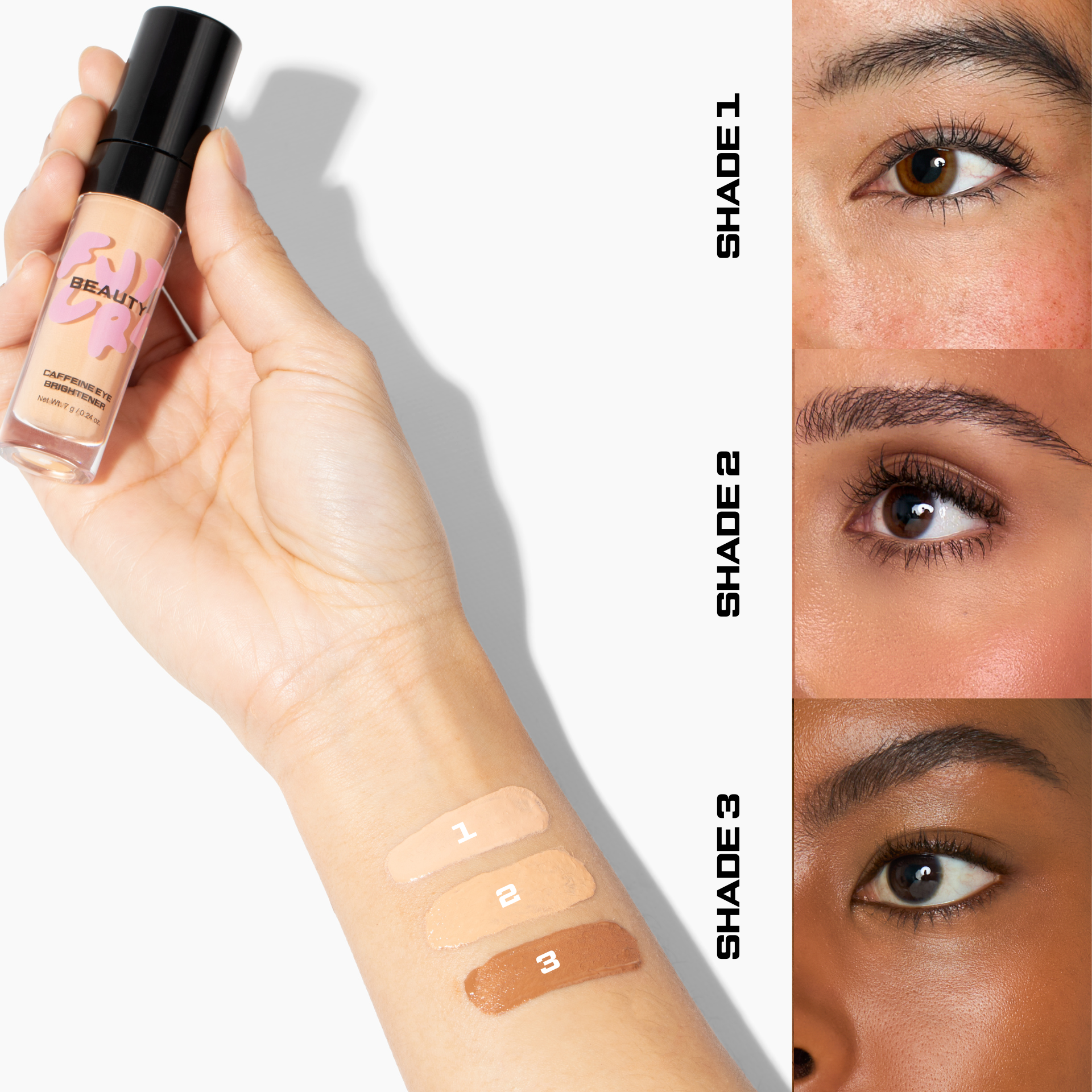 Use on its own to wake up, brighten, and de-puff with medium coverage or wear