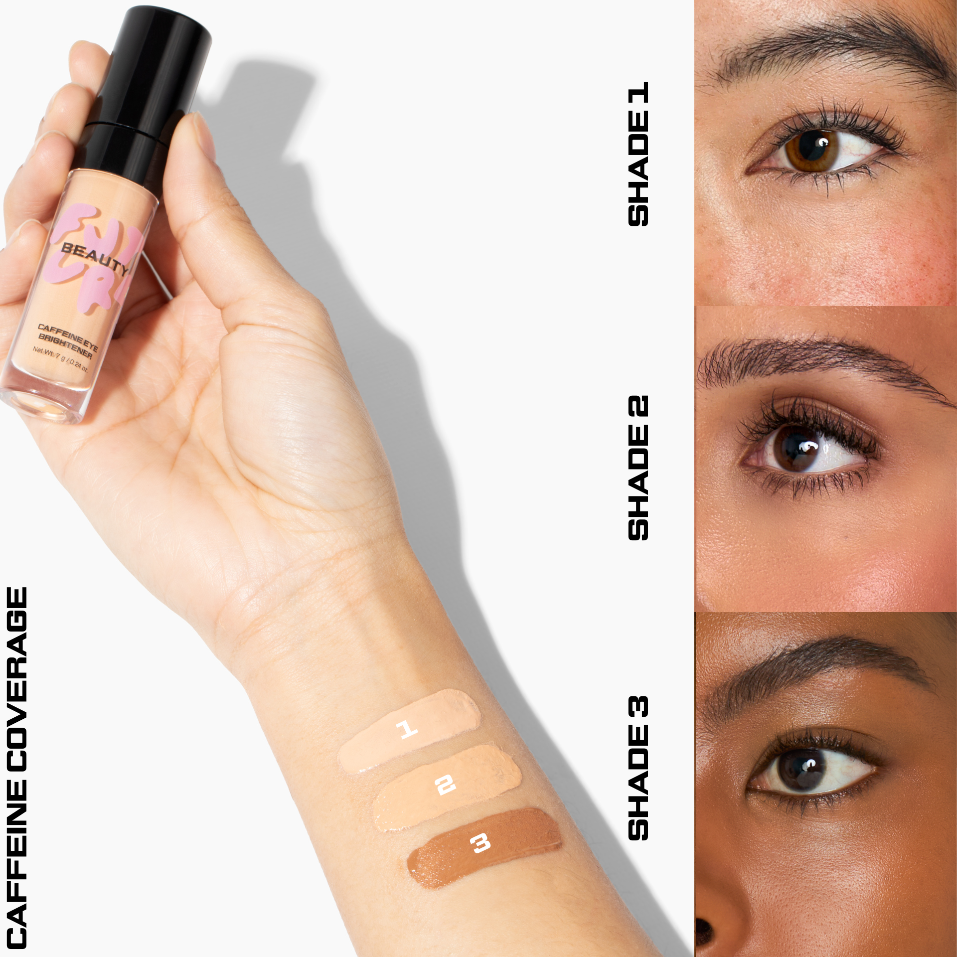 Use on its own to wake up, brighten, and de-puff with medium coverage or wear under full coverage concealer as the first step for a flawless under eye.