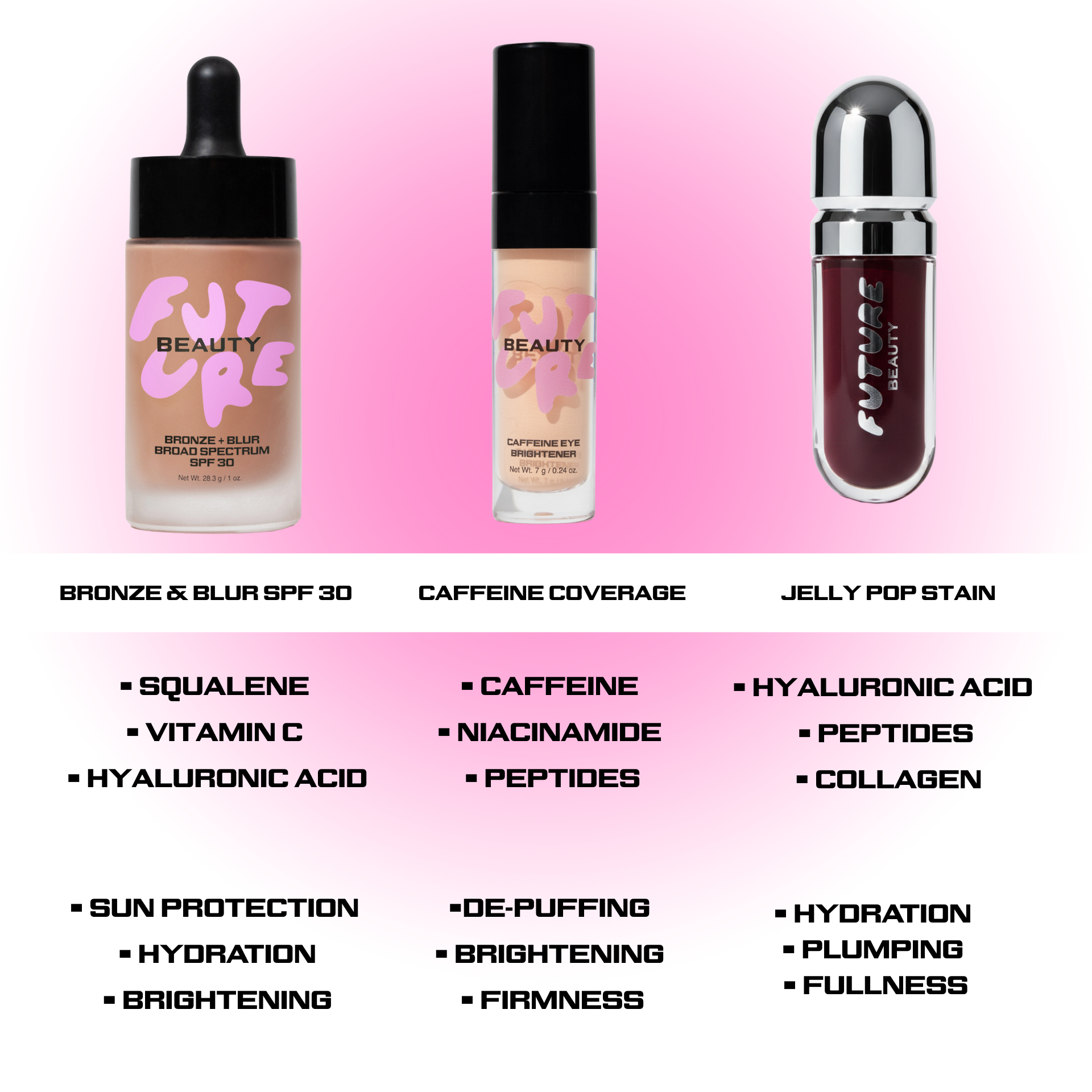 - Firms + smooths skin (Peptides)